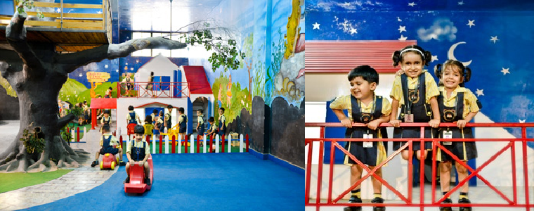 The children enjoy swings, rides, ball-pool, etc. under the supervision of teachers.